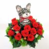 アメリカンショートヘアのトピアリーにプリザーブドフラワーで豪華にアレンジした作品です。猫好きの方へのプレゼントなら最高の贈り物になりますね。お花はプリザーブドフラワーでお水の世話も無く長い間生花のような美しさのままお楽しみいただけます。生花のように美しいですがドライフラワーと同じ管理方法です。12輪のプリザーブドフラワーのバラが入って大変豪華です。猫の部分のアメリカンショートヘアのトピアリーはプリザーブド加工された高級な水苔を使用しています。大切な方へのお祝い事、結婚式のウェルカムキャット、ご両親へのプレゼントにぜひおすすめです。猫好きな方への誕生日プレゼントにも大変喜ばれます。アメリカンショートヘアを飼っている方には感激される作品です。生花のように見える美しく上品なプリザーブドフラワーは生花よりも長持ちして、手間もかからないのでうれしいですね。