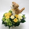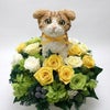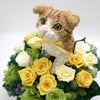 スコティッシュフォールド猫の形の豪華なプリザーブドフラワーアレンジです。耳が折れて丸いお顔のスコティッシュフォールド. 猫の形のリアルなトピアリーを豪華にプリザーブドフラワーのバラ12輪を中心としたアレンジにしました。生花のように美しいプリザーブドフラワーですが、お水の世話もなく長い間きれいにご覧いただけます。湿度に気を付けドライフラワーと同じ管理方法です。このスコティッシュフォールドのトピアリーもプリザーブド加工された高級な水苔を使用しています。握手会などのイベント、舞台やコンサートなどに出演される方への楽屋花として、愛猫家の方への贈り物に印象に残ることでしょう。他にお花がたくさんあっても、ペットのモチーフの物は一番気になる存在ですね。猫好きの人にはたまらないプレゼントです。完成度の高い手仕事品で高評価をいただいていますアトリエ花倶楽部のオリジナル作品です。