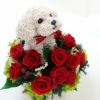 マルチーズ好きの人にはたまらない、高級感のあるマルチーズグッズ。マルチーズのトピアリープリザーブドフラワーアレンジです。 犬の形のお花は犬好きの人にはたまらなくうれしいですね。特にマルチーズを飼っていらっしゃる方ならなおさらうれしいマルチーズのぬいぐるみのようにリアルなトピアリープリザーブドフラワーアレンジ。 犬の部分のトピアリーはプリザーブドフラワーと同じ加工を施してあるモスで制作しています。マルチーズは毛足の長いスパニッシュモスをプリザーブド加工してある高級なモスで制作しています。作家が制作するオリジナルのマルチーズトピアリー。お花はプリザーブドフラワーで、バラ12輪を中心とした豪華なアレンジです。プリザーブドフラワーなのでお水の世話も無く長い間生花のような美しさのままお楽しみいただけます。生花のように美しいですがドライフラワーと同じようにお水は必要ありません。マルチーズ好きの人へのご結婚祝いに、大切な方へのお祝い事、結婚式のウェルカムドッグ、ご両親へのプレゼントぜひおすすめです。犬好きな方への誕生日プレゼントにも大変喜ばれます。完成度の高い手仕事品で高評価をいただいています、アトリエ花倶楽部のオリジナルトピアリー、手作りの作品にしか出せない柔らかな雰囲気と美しさがあります。