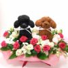 プードル2匹の豪華なフラワーアレンジ(生花)