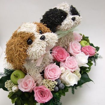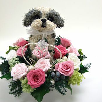 シーズー好きの人に喜ばれるシーズーグッズ。可愛いシーズー好きの人は犬とお花のアレンジメントが気に入ってくれるでしょう。高級感があり、他にはない特別感がある、贈る側も贈られる側も幸せな気持ちになるようなフラワーギフトです。