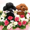 プードル2匹の豪華なフラワーアレンジ(生花)