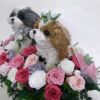 シーズー犬を飼っていらっしゃる方のご結婚式に是非おすすめの、シーズー犬のご結婚式用ウェルカムドールです。お花はプリザーブドフラワーアレンジで豪華にバラを25輪を中心とした作品です。