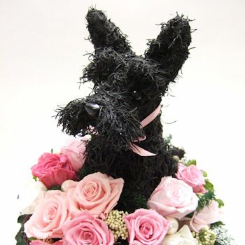 動物病院開院祝い。ペットサロン開店祝い、ご結婚式でご両親へのプレゼントに、可愛い、癒される動物トピアリーが喜ばれています。