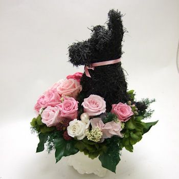 感動されるアニマルフラワー、アトリエ花倶楽部オリジナルの動物トピアリーをプリザーブドフラワーアレンジ、鉢植え、寄せ植え、生花アレンジ、リースを制作しています。