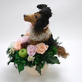 感動されるアニマルフラワー、アトリエ花倶楽部オリジナルの動物トピアリーをプリザーブドフラワーアレンジ、鉢植え、寄せ植え、生花アレンジ、リースを制作しています。