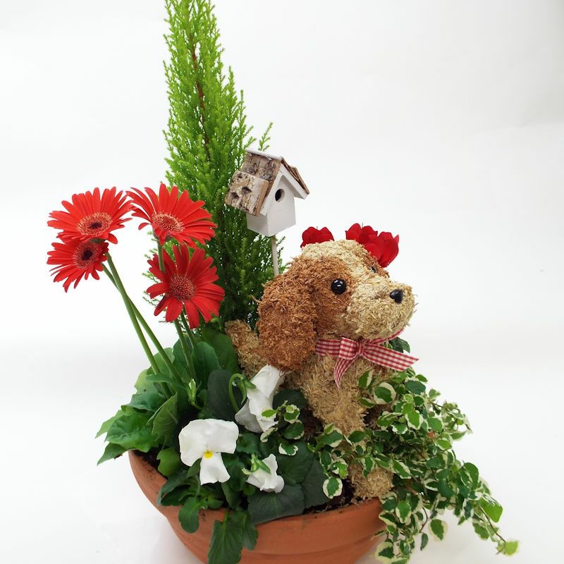 動物病院開院祝い。ペットサロン開店祝い、ご結婚式でご両親へのプレゼントに、可愛い、癒される動物トピアリーが喜ばれています。