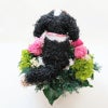 キャバリア好きの方へお勧めの、キャバリアトライカラーの可愛いトピアリー プリザーブドフラワーアレンジです。お花はプリザーブドフラワーでバラ8輪を中心としたアレンジです。お水のお世話などなく、長い間きれいに飾れるのが魅力ですね。 愛犬家にとってうちの子と同じ犬種のグッズは何かと気になり、何かとうれしくなりますね。ご両親が大切にしているワンコさんグッズをご結婚式でご両親のプレゼントに差し上げるのも最高です。素敵な演出になりますね。愛犬と似ている子がお花に囲まれて感謝の気持ちを伝えてくれる。プリザーブドフラワーアレンジなので長く飾っていただけますので記念にもなります。犬の部分のトピアリーもプリザーブドフラワーと同じ加工を施してあるモスで制作しています。キャバリアはプリザーブド加工された高級なスパニッシュモスを使用しています。アトリエ花倶楽部オリジナルのペットグッズ。お写真を参考に制作するオーダーメイドも承っております。(別途オーダーメイド代がかかります)