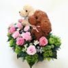 プリザーブドフラワーアレンジタイプは犬の部分のトピアリーもプリザーブドフラワーと同じ加工を施してあるモスで制作しています。こちらのプードルはプリザーブド加工された高級な水苔を使用しています。もこもことした雰囲気が可愛いですね。