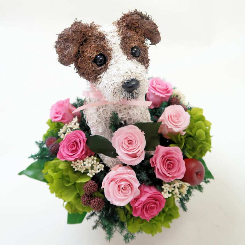 動物病院開院祝い、動物病院開業祝いに動物病院の先生方からも大変喜ばれています。動物病院様へのお祝いに作家の制作するオリジナルの犬や猫のモチーフのついたお祝い花は特別感があって喜んでいただけます。犬猫動物トピアリーのプリザーブドフラワーアレンジや寄せ植え。特にお忙しい動物病院では手間のかからないプリザーブドフラワーアレンジと犬猫動物トピアリーのフラワーギフトが喜ばれています。動物病院の先生方からも「こんな気の利いたお花があるんだね」と受付に飾っていただきました。というお客様が多くいらっしゃいます。長く飾っていただくことができて記念になります。動物病院の先生からも「いただいてうれしかったので利用させてもらいます」とご利用いただいています。プリザーブドフラワーアレンジタイプを始め、鉢植え、生花アレンジの動物の形フラワーギフトを制作しています。