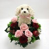 犬好きの人が喜ぶプレゼントとして可愛い子犬のプリザーブドトピアリーフラワーアレンジはいかがでしょうか。お耳の垂れている可愛いワンちゃんのトピアリーとプリザーブドフラワーアレンジです。時にはプードルに似ていたりラブラドールに似ていたりといろいろなワンちゃんトピアリーで出来上がります。犬種はお選びいただけませんが、犬のお色は明るい茶色、黒などに変更可能です。犬種別トピアリーよりも少し小さめの犬のトピアリーです。高級なプリザーブドモスを使用したぬいぐるみ風なモストピアリーでお花はプリザーブドフラワーアレンジです。 犬とプリザーブドフラワーとのアレンジは魅力的ですね。犬の存在が目を引くアレンジです。ペットショップ開店祝いにおすすめの作品です。 アトリエ花倶楽部ならではのおしゃれなオリジナルペットグッズです。