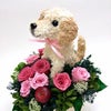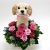 ラブラドールレトリバーのトピアリープリザーブドフラワーアレンジです。かわいいぬいぐるみ風なモストピアリーをプリザーブドフラワーとアレンジしています。 ラブラドールの優しい感じやあたたかい雰囲気が素材のモスの自然素材と合っておしゃれなプリザーブドフラワーアレンジになりました。作家が1つ1つ丁寧に制作しています。お花はプリザーブドフラワーでお水の世話もなく長く楽しめます。バラ8輪を中心とした素敵な作品です。ラブラドールの犬の部分はプリザーブドフラワーと同じ加工の施してある水苔で制作しています。手作りの作品とお花の美しさは、見るたびに心弾みますね。ラブラドール好きの人には感激される作品です。