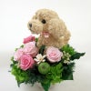 犬好きの人へのプレゼントに喜ばれるトイプードルのオリジナルトピアリー プリザーブドフラワーアレンジです。
