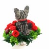 アメリカンショートヘアのトピアリーにプリザーブドフラワーで豪華にアレンジした作品です。猫好きの方へのプレゼントなら最高の贈り物になりますね。お花はプリザーブドフラワーでお水の世話も無く長い間生花のような美しさのままお楽しみいただけます。生花のように美しいですがドライフラワーと同じ管理方法です。12輪のプリザーブドフラワーのバラが入って大変豪華です。猫の部分のアメリカンショートヘアのトピアリーはプリザーブド加工された高級な水苔を使用しています。大切な方へのお祝い事、結婚式のウェルカムキャット、ご両親へのプレゼントにぜひおすすめです。猫好きな方への誕生日プレゼントにも大変喜ばれます。アメリカンショートヘアを飼っている方には感激される作品です。生花のように見える美しく上品なプリザーブドフラワーは生花よりも長持ちして、手間もかからないのでうれしいですね。