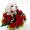 マルチーズ好きの人にはたまらない、高級感のあるマルチーズグッズ。マルチーズのトピアリープリザーブドフラワーアレンジです。 犬の形のお花は犬好きの人にはたまらなくうれしいですね。特にマルチーズを飼っていらっしゃる方ならなおさらうれしいマルチーズのぬいぐるみのようにリアルなトピアリープリザーブドフラワーアレンジ。 犬の部分のトピアリーはプリザーブドフラワーと同じ加工を施してあるモスで制作しています。マルチーズは毛足の長いスパニッシュモスをプリザーブド加工してある高級なモスで制作しています。作家が制作するオリジナルのマルチーズトピアリー。お花はプリザーブドフラワーで、バラ12輪を中心とした豪華なアレンジです。プリザーブドフラワーなのでお水の世話も無く長い間生花のような美しさのままお楽しみいただけます。生花のように美しいですがドライフラワーと同じようにお水は必要ありません。マルチーズ好きの人へのご結婚祝いに、大切な方へのお祝い事、結婚式のウェルカムドッグ、ご両親へのプレゼントぜひおすすめです。犬好きな方への誕生日プレゼントにも大変喜ばれます。完成度の高い手仕事品で高評価をいただいています、アトリエ花倶楽部のオリジナルトピアリー、手作りの作品にしか出せない柔らかな雰囲気と美しさがあります。