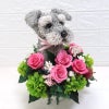 賢くて愛らしいシュナウザーが、感謝の気持ちを届けます。小さなthank youプレート付きのシュナウザーのトピアリープリザーブドフラワーアレンジです。感謝の気持ちをさりげなく手作りで温かみのあるプリザーブドフラワーアレンジと大好きなシュナウザーとの思い出を贈りましょう。シュナウザーのお色は愛犬に似たお色をお選びくださいね。既製品にはない、ハンドメイドならではの温かみ。シュナウザー特有のシルエットを大切に制作しています。高品質なプリザーブドフラワーを使用しています。水やり不要で数年間その美しく飾っていただけます。お花はプリザーブドフラワーのバラ5輪を中心としたアレンジです。