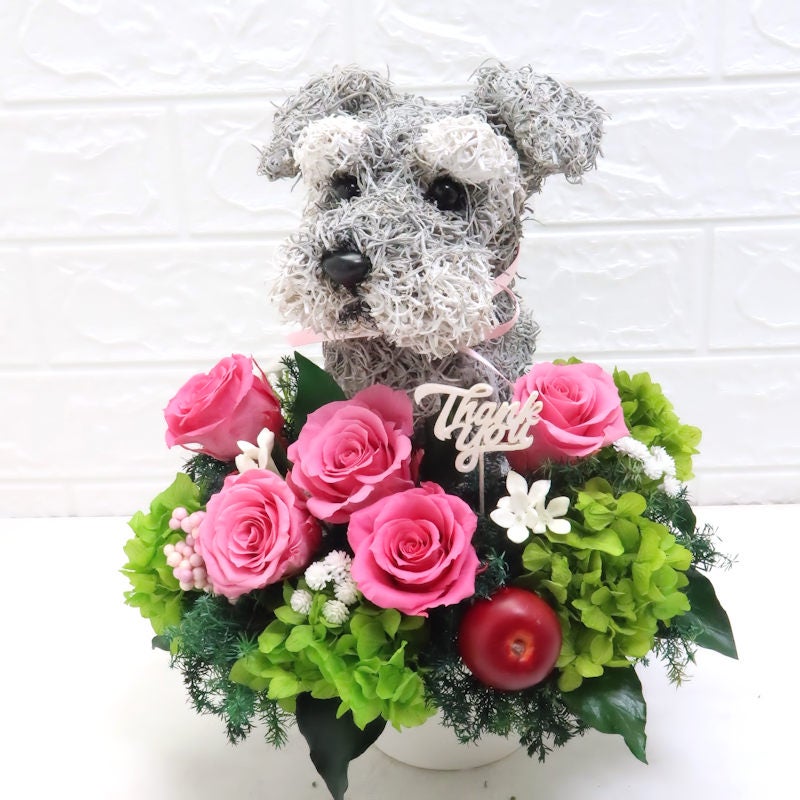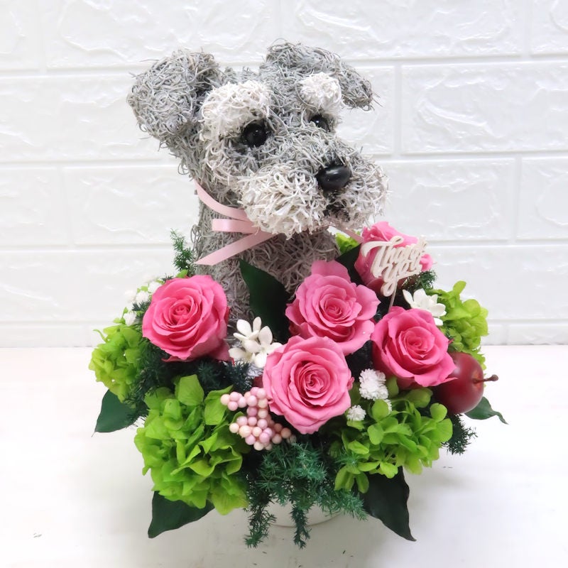 かけがえのないペットに想いを寄せて、一周忌にペットのお供え、ご友人やご家族のペットにも「忘れないよ」という贈り物を制作しています。愛犬、愛猫の一周忌に面影のあるお花は心が和みます。手作りで優しい感じが癒してくれる犬猫のプリザーブドフラワーアレンジがおすすめです。虹の橋の向こうで可愛いく元気に見守っています。