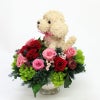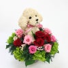 ペットサロン開店祝いに大人気のトイプードルのトピアリーとプリザーブドフラワーを豪華に使ったお花ギフトにぴったりの プリザーブドフラワーアレンジです。 トイプードルとお花。夢のような組み合わせの犬の花束で「幸せをありがとうございます」とお客様から言われるほどです。 プリザーブドフラワーなのでお水の世話も無く長い間生花のような美しさのままお楽しみいただけます。生花のように美しいですがドライフラワーと同じ扱いで管理します。プリザーブドフラワーのバラが12輪を中心としたアレンジで大変豪華です。大切な方へのお祝い事、結婚式のウェルカムドッグ、ご両親へのプレゼントにぜひおすすめです。犬好きな方への誕生日プレゼントにも大変喜ばれます。 アトリエ花倶楽部のプリザーブドモストピアリーは他には無い世界に1つの作品で感動される作品です。プリザーブドフラワーアレンジタイプは犬の部分のトピアリーもプリザーブドフラワーと同じ加工を施してあるモスで制作しています。こちらのプードルはプリザーブド加工された高級な水苔を使用しています。もこもことした雰囲気が可愛いですね。