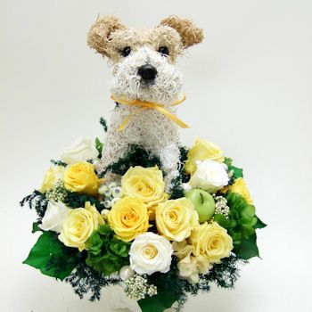 ワイヤーフォックステリアの プリザーブドフラワーアレンジBeauty