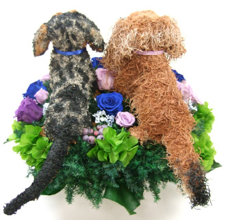 楽屋花でご利用いただきましたダックス2匹のオーダーメイドトピアリープリザーブドフラワーアレンジ